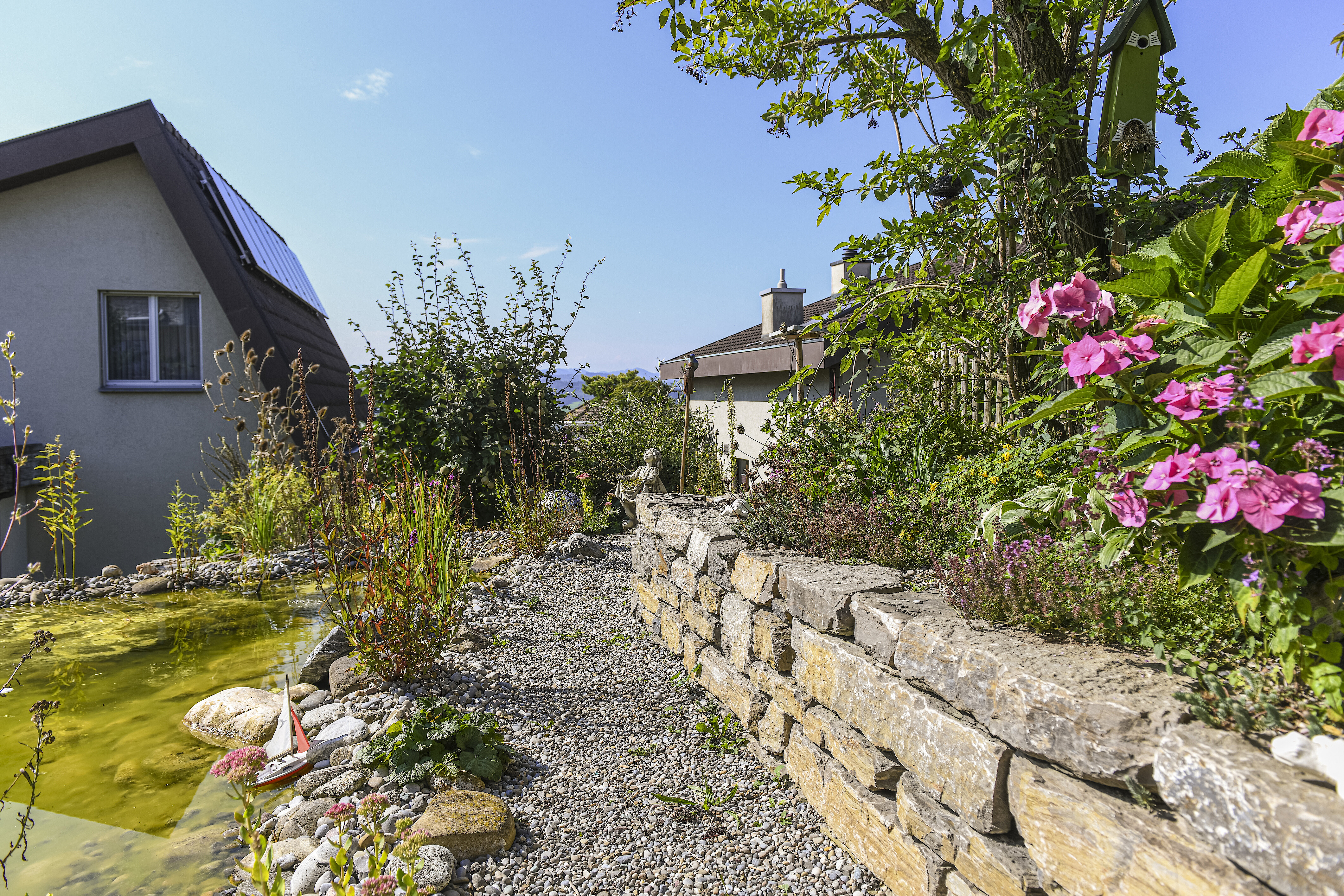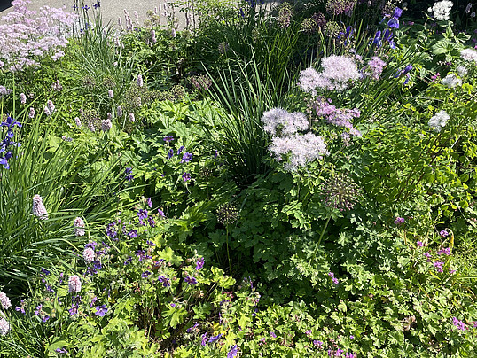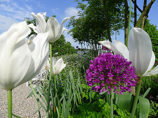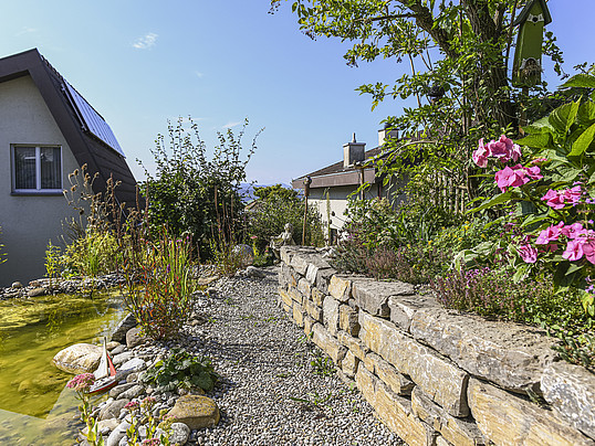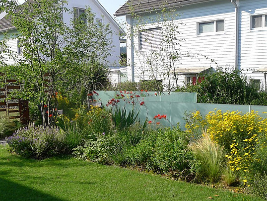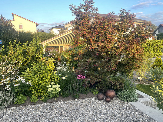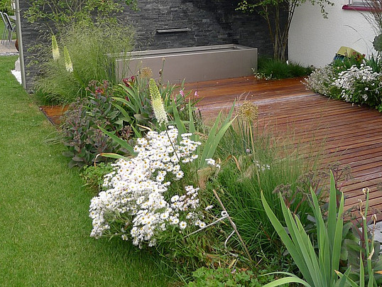 Beläge und Mauern dienen dem Garten als Grundgerüst. Doch mit einer Bepflanzung erwacht der Garten zum Leben. Mit gestalteten Rabatten wird von Februar bis November immer etwas blühen. Sogar an schattigen Standorten lassen sich mit Blattschmuck-Stauden schöne Orte gestalten.