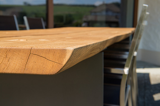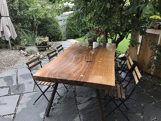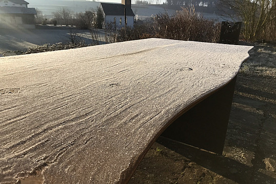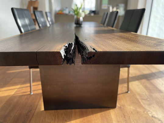 Bei diesen einzigartigen Handerzeugnissen kommen weder Schrauben noch Leim zum Einsatz. Die Tischplatte besteht aus exakt einem Stück Holz. Narben und Makel, entstanden durch Wind Wetter und Naturgewalten zeichnen den Tisch. Dadurch erhält Ihr Tischunikat einen einzigartigen Charakter. So wird die Geschichte des Baumes für jeden sichtbar.